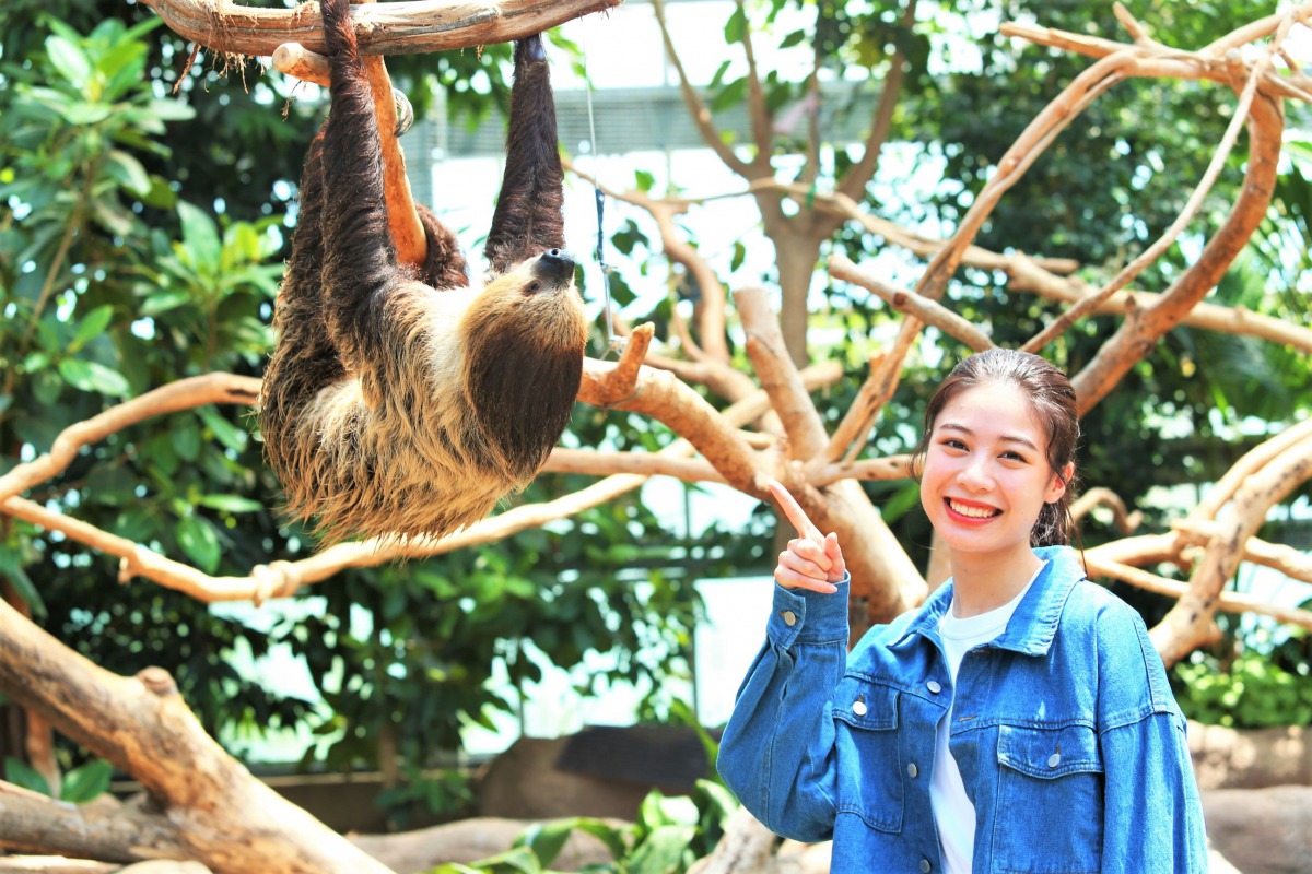 野生のような環境下で、のびのびと暮らす動物を観賞できるのが何よりの魅力。「熱帯の森」のジャングルゾーンでは、木にぶら下がって過ごすナマケモノやコモンマーモセットに大接近できる貴重な体験も!檻や柵に邪魔されることなく、つぶらな瞳を間近でじっくりと見つめることができます(ナマケモノとのふれあいは不可)。
