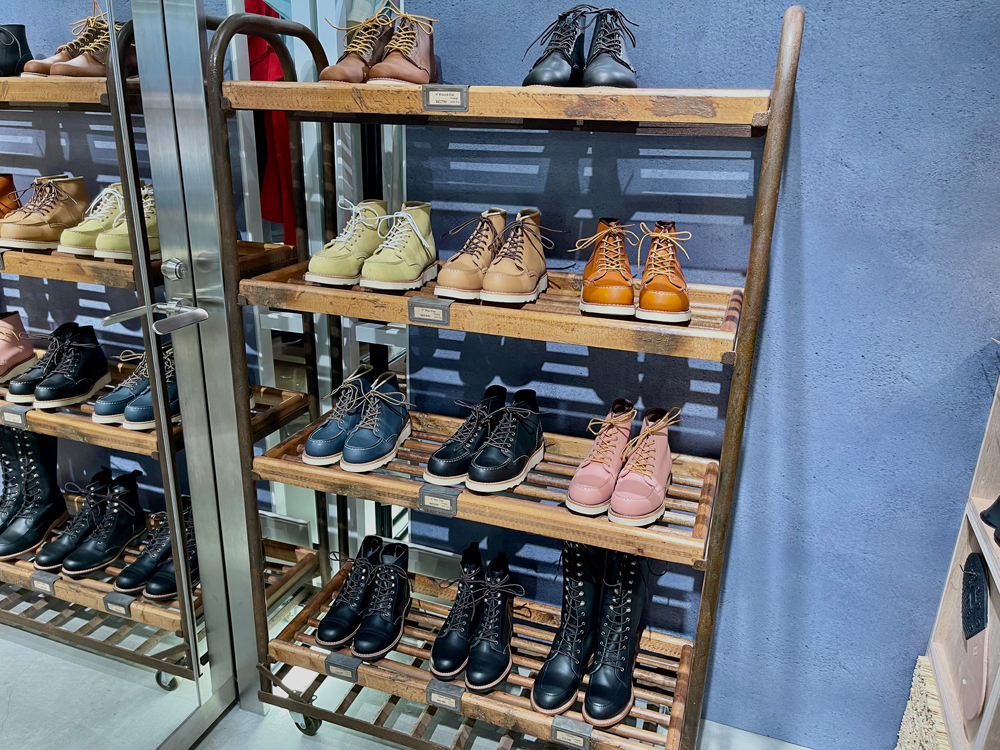 秋冬のファッションに取り入れたい、ワークブーツが並ぶ「RED WING SHOE STORE(レッド ウィング シューストア)」も。履き込むほどに皮の味わいが増し、足に馴染むので、愛用者が多いブランドです。