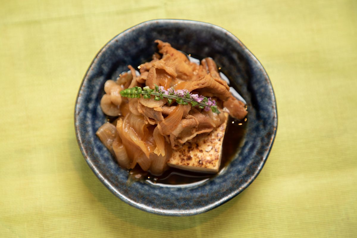 兵庫県洲本市の「えびすもち豚と成井さんちの完熟たまねぎを使った肉豆腐(600円)」は、「るるぶキッチン」では定番メニューです。バナナを食べて育ったという、脂身がまろやかな甘みをもつえびすもち豚と、ふるさと納税で人気のブランドたまねぎを使っています。