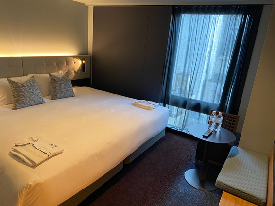 私が今回宿泊したお部屋は、「スタンダードキング」。ゆったりしたサイズのベッドと、小さな机と椅子がある、ひとりにはちょうどいいコンパクトなお部屋です。
