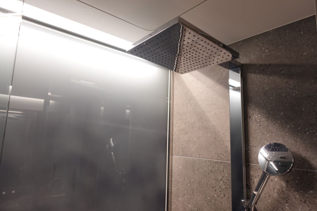 洗面台やシャワールーム周りも、ベッド周りと同じ配色のデザインなのもテンションがあがります!特に、ヴィンテージのゴールドのティッシュケースが、さりげなく存在感があって好きです。こんなところまで注目できるのが、ひとりステイの良さですよね。