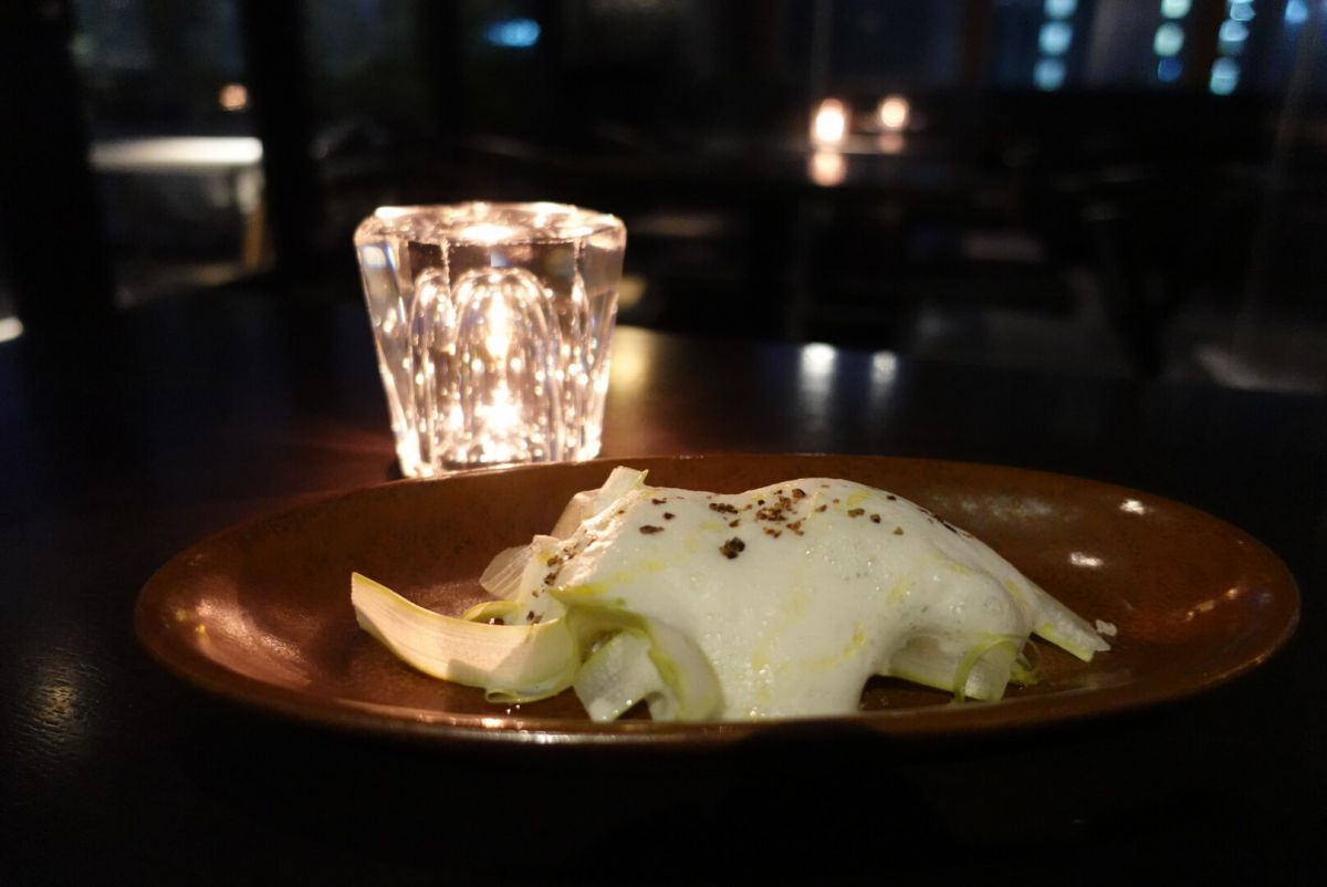 抜粋して、特においしかったものを紹介していきますが、まずは「帆立 アスパラガス」。ふわふわのエスプーマと、その下に潜む帆立のクリーミーさがたまりませんでした。