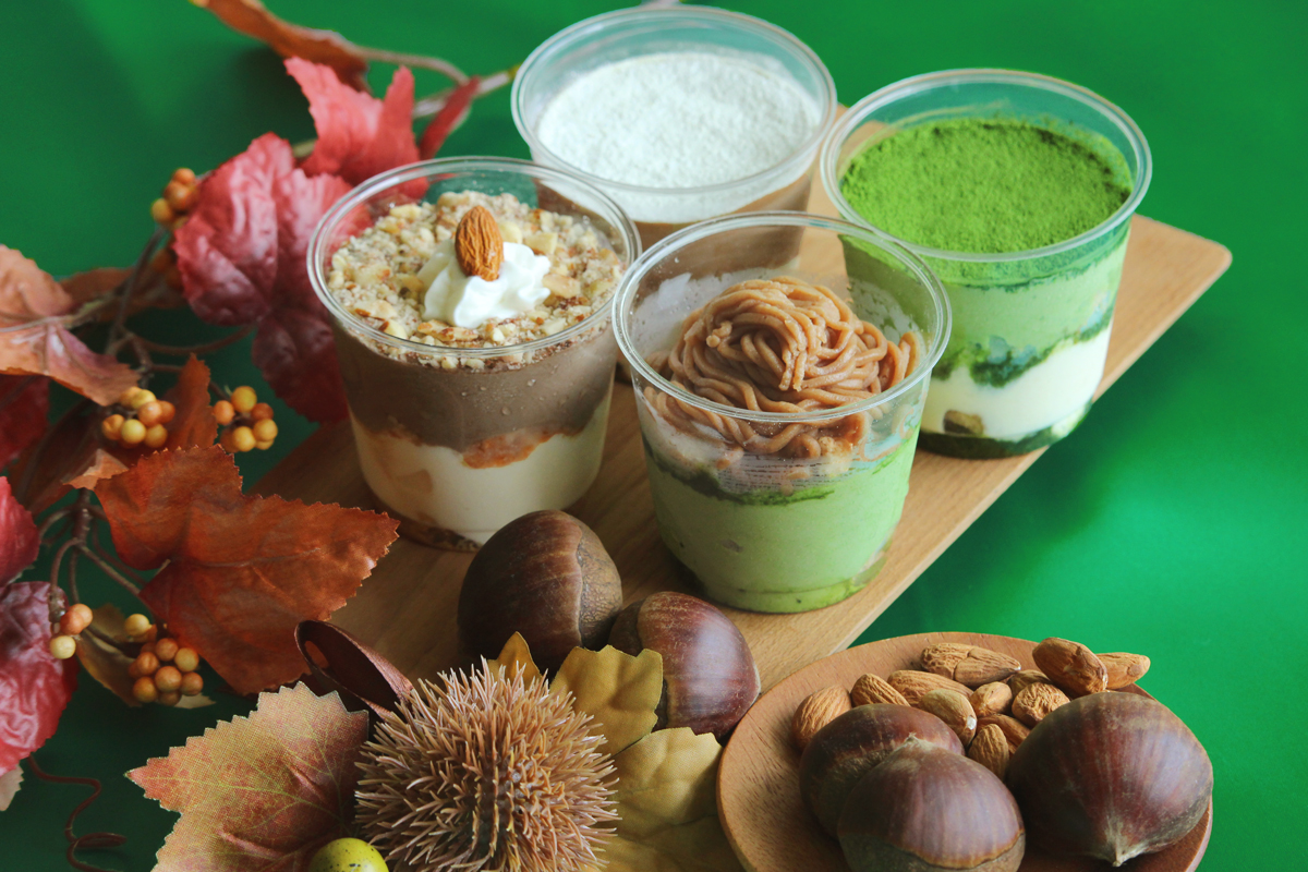 大人気の宇治茶ティラミスシリーズに、食欲の秋にふさわしい「抹茶モンブラン」味と「カラメルほうじ茶アーモンド」味が加わり、4種類の「抹茶モンブラン&カラメルほうじ茶アーモンドティラミス食べ比べセット」2376円が誕生しました。「d:mathca」のオンラインショップにてお取り寄せが可能。お茶の味わいを引き立てる食材の組合わせを研究して実現した、秋冬限定のティラミスセットです。
