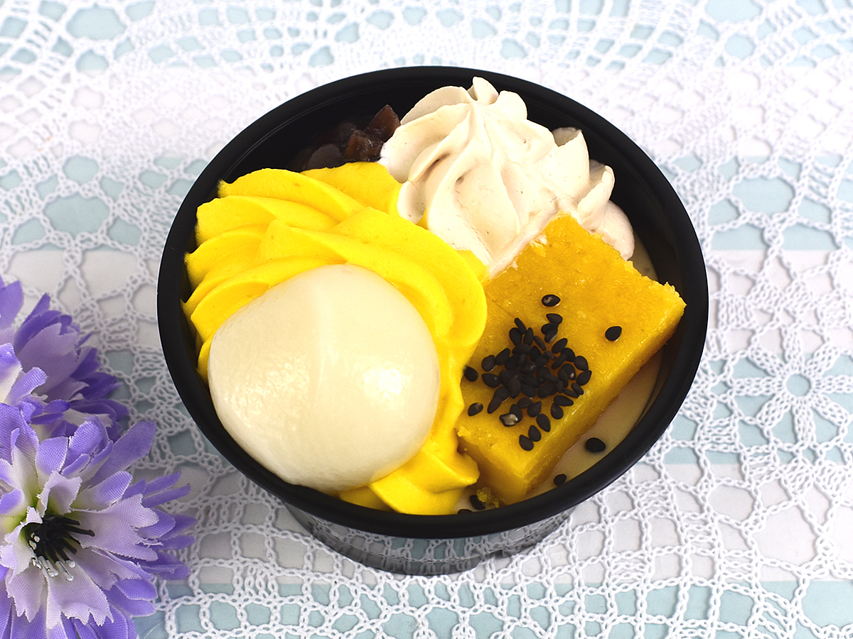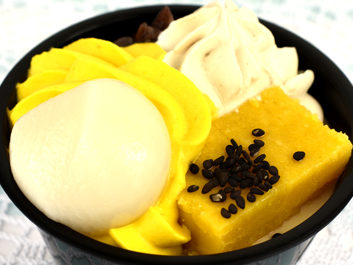 インパクト抜群のトッピングも「和パフェ」の大きな魅力。ドンっと乗ったスイートポテトと白玉だんごは、見た目の存在感だけでなく味わいの満足感も一級品です。ギュッと詰まったスイートポテトをかじると、さつまいも独特のホクホク食感が幸せ気分を盛り上げてくれます。白玉だんごは素朴な甘みが絶妙。そのまま食べてもおいしいですが、クリームをつけて食べれば和洋折衷な新しい味わいが生まれます。