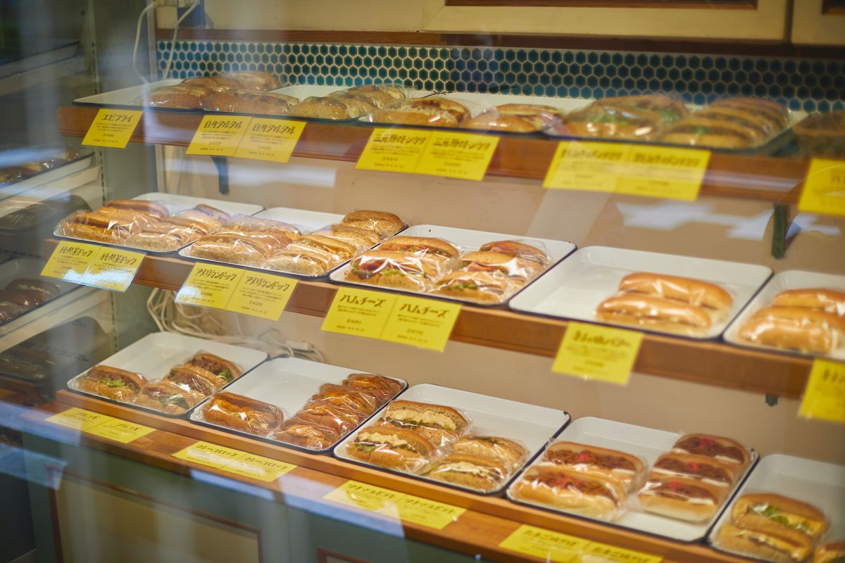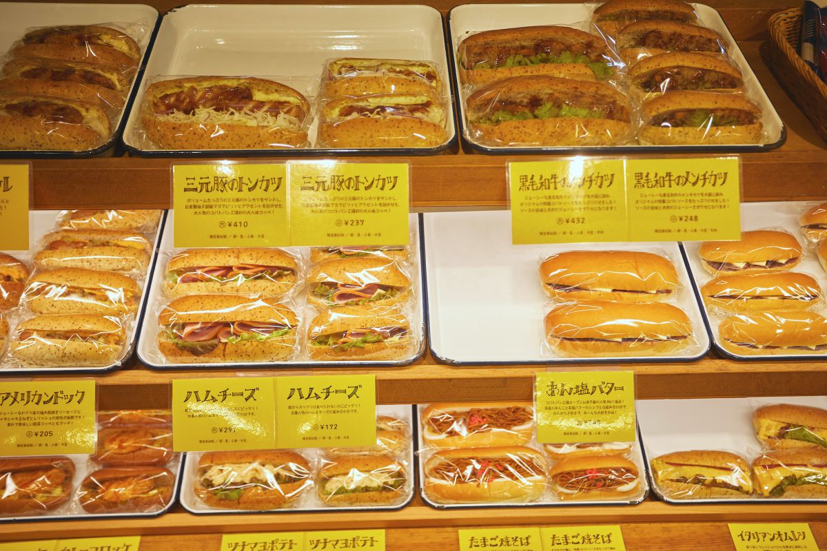 コッペパンはプレーン、胚芽、黒糖の3種類。サンドする具材に合わせて挟むパンを変えてあります。パン生地はすこし甘くて、ふわふわ。おかずコッペにお菓子コッペ、注文を受けてから揚げる「揚げパン」など、ちびっこからお年寄りまでみんなに愛されるコッペパンばかり、約20種類並びます。
