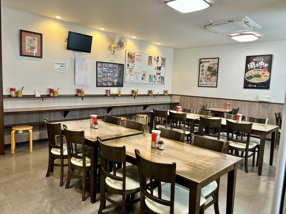藍住町にある、親しみやすい大衆食堂のような雰囲気のお店。中細ストレートの自家製麺とこだわりの茶系スープは、徳島ラーメン好きならハマること間違いなしの逸品です。