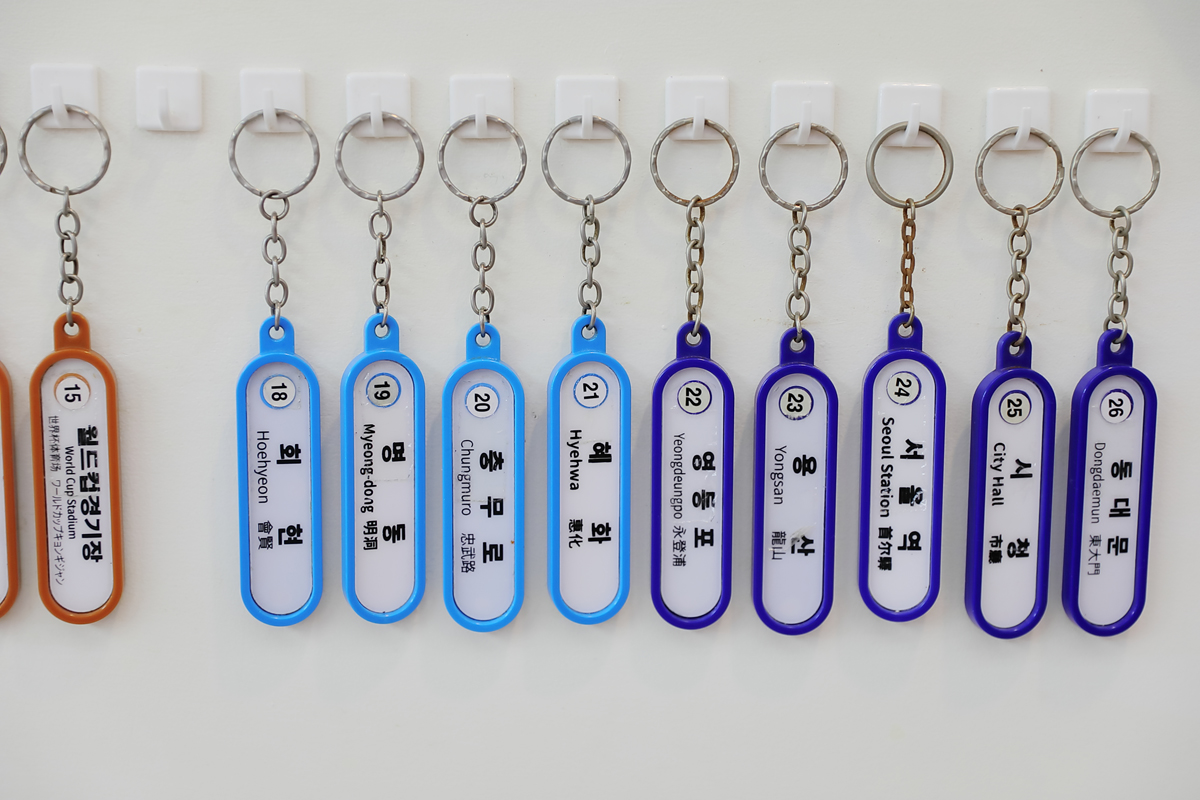 会計時にカウンターへ持っていく席札にも注目を。韓国の駅名が書かれていて、並んでいるところもかわいい。