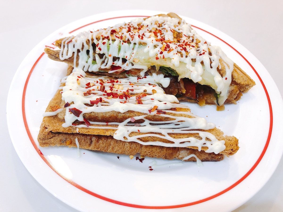 フォトジェニックな内装も話題ですが、こだわりの料理も絶品ばかり。お店の看板メニューは韓国の屋台で人気のサンドイッチを独自にアレンジした韓国トーストです。バターで焼いたパンに野菜、卵、チーズや豚肉の甘辛炒めなどを挟んで焼き上げています。トーストには自家製の全粒粉パンを使用。伝統的なものからチーズでアレンジしたオリジナルメニューまで4種類の韓国トーストがラインナップしています。