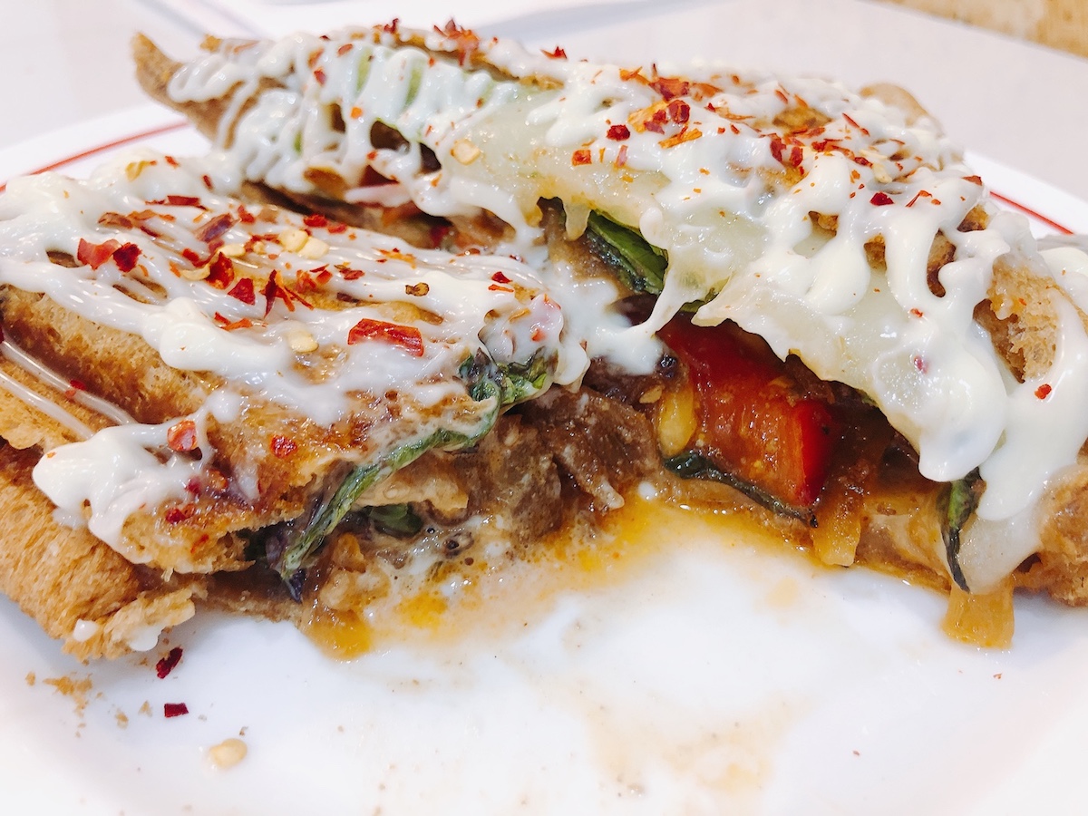 今回はAmPmオリジナルの「チェユクポックムサンド」900円をオーダー。トーストの中には韓国産コチュジャンを使用した甘辛い豚肉がたっぷり挟まっています。ほかにもトマトなどの野菜もたっぷり。チーズでアレンジされており甘辛さとまろやかさがくせになりそうです。