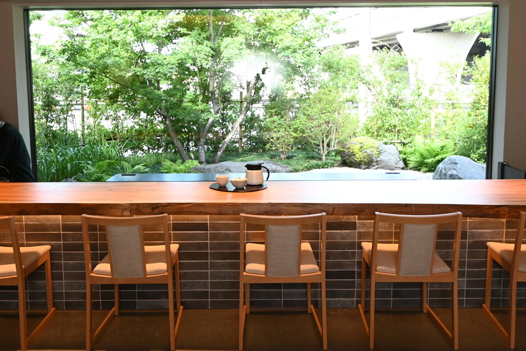 KADODE OOIGAWAの食の楽しみはまだまだ続きます。賑やかな施設内にあって、まるで別世界のように静かで落ち着いた空間の「茶寮」は、日本茶をスイーツとのペアリングで提供しています。
