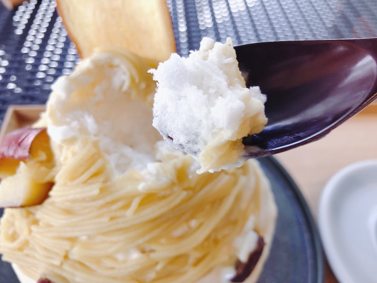 インパクト大!素材の味の変化が楽しい贅沢な”焼き芋モンブラン”かき氷