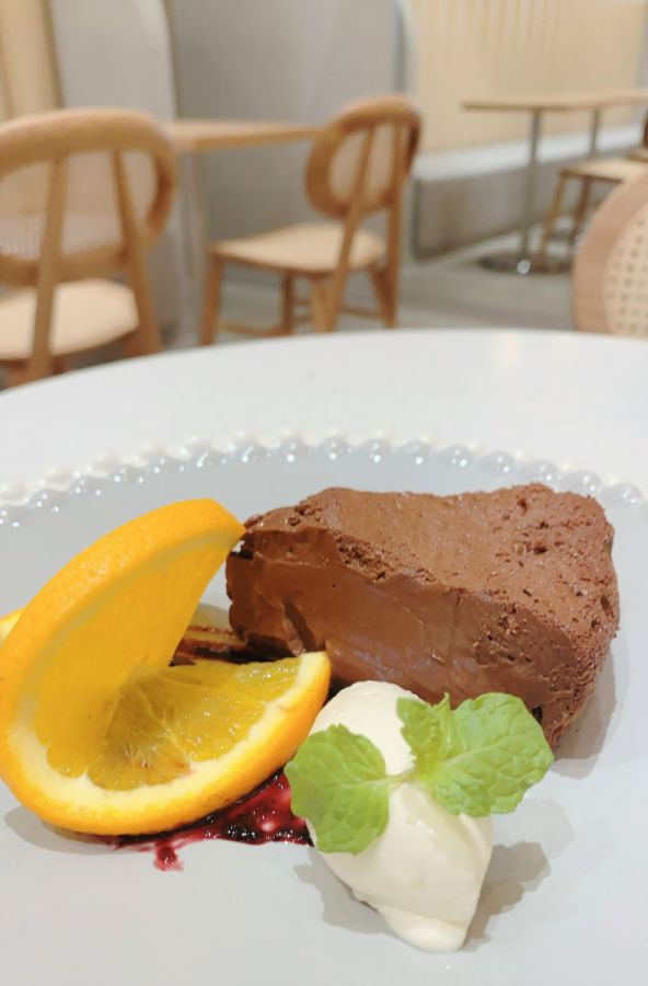 「Maison de L」ではケーキ類も充実しています。この日のラインナップは小麦粉を一切使っていないグルテンフリーなチョコレートケーキ800円。ラム酒を感じる大人な味わいで、食べた瞬間は濃厚なのに、後味は不思議とさっぱり。添えられているブルーベリージャムやクリームで味変も楽しめちゃいます。数量限定販売なので、ご注意を!