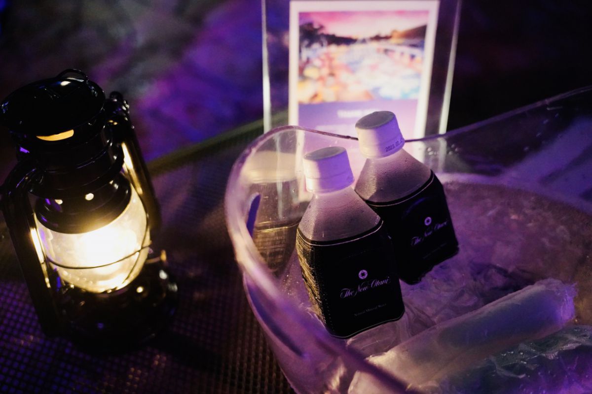 テントの脇には外気浴用のベンチや人数分のミネラルウォーター、おしぼりが用意されています。テントサウナ同士は少し距離があるのでほどよいプライベート感も!