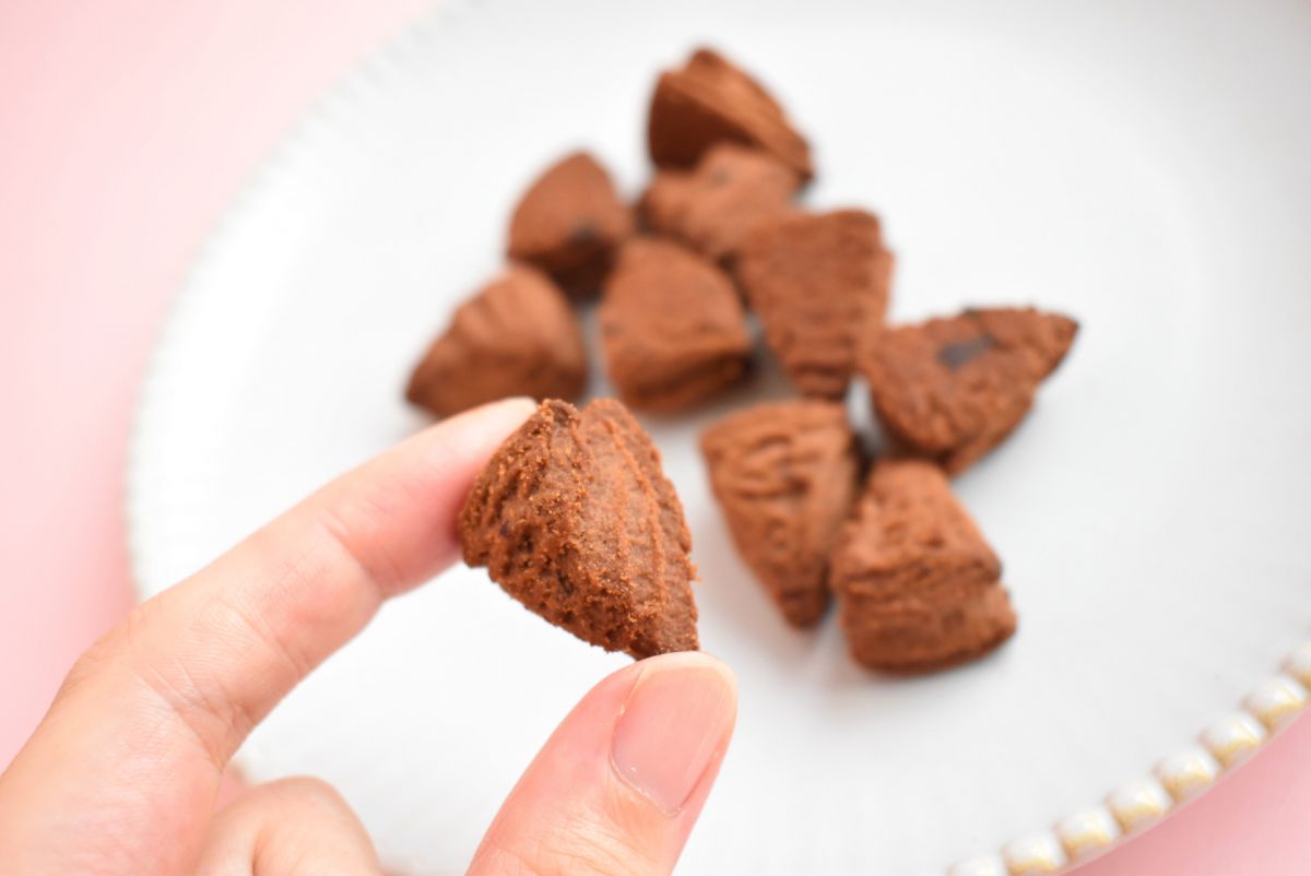 さっそく食べてみると、サクッとした軽い食感。バターが入っていないせいか若干の物足りなさは感じるものの、ほろ苦くビターなチョコレートの風味が口の中に広がって、“チョコレートのお菓子を食べている”という満足感が得られますよ。