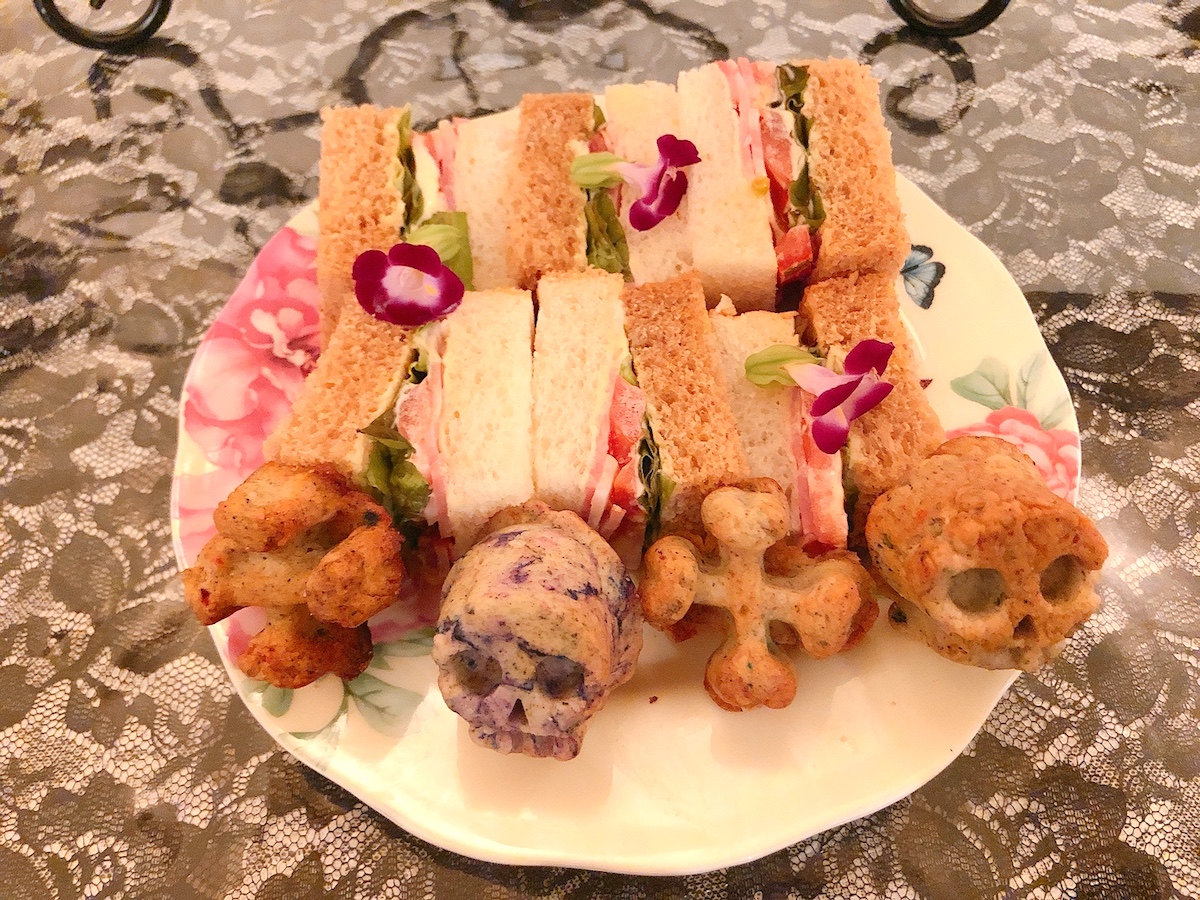下段は「アコリット」のアフタヌーンティーでは定番のサンドイッチと手作りスコーンがセットになっています。スコーンもすっかりハロウィン仕様。こんなにもかわいらしいアフタヌーンティーですが、すべてのメニューが人工的な甘味料などを使わず、自然の素材で色を出しているので安心して食べることができちゃいます。ハロウィンらしいキュートなケーキから秋の味覚、お腹いっぱいになるセイボリーまで、大満足間違いなしのメニューですよ。