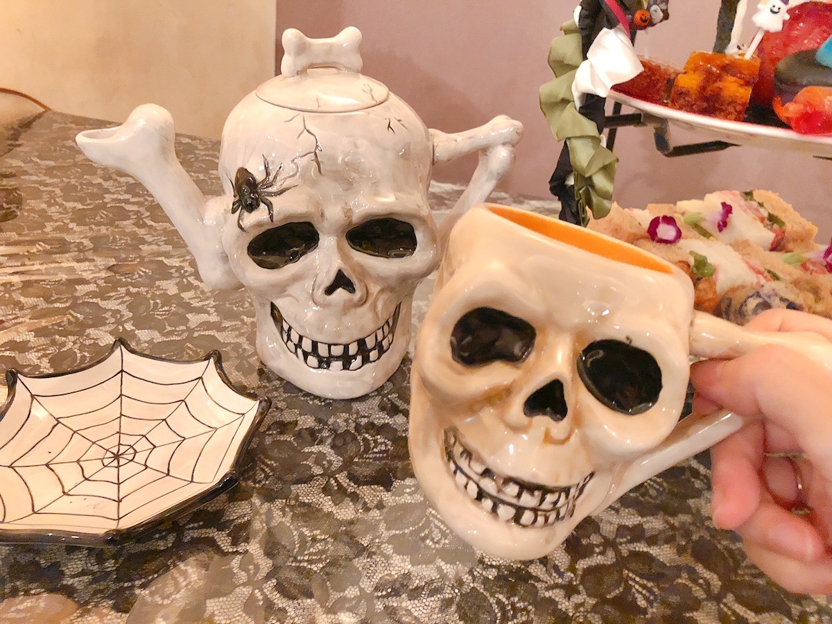 今回は気になる食器も一部ご紹介。ハロウィンに向けて新たに調達したというのがガイコツのカップとポット。いつもなら手にすることはないかもしれませんが、この機会にちょっとレアな食器でイベントの気分をさらに高めてみてはいかが?