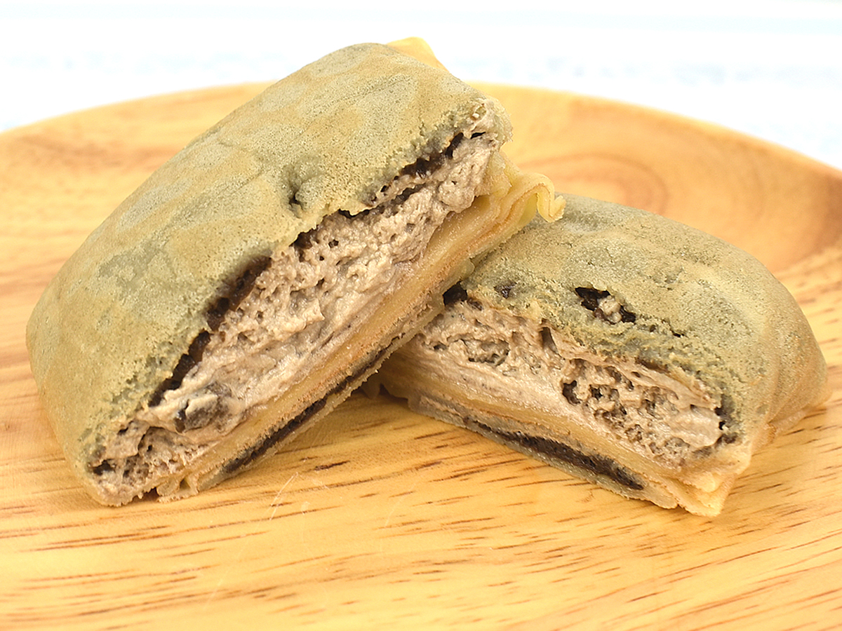 中に入っているのは2種類のクリーム。濃い色の「ほうじ茶クリーム」は、ほうじ茶の香ばしさがガツンと感じられる濃厚な味わい。丹念に炒りあげたほうじ茶ならではの、芳醇な香りが鼻に抜けていきます。