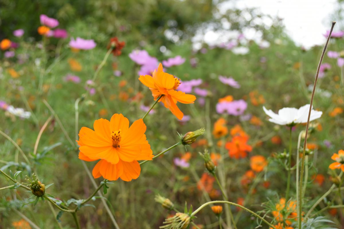 赤、白、グラデーションに加えて、キバナコスモスの群落もあります。コスモス越しに木々を写し込んだり、英国風の建物を写し込んだり。写真を撮るのが楽しくてたまらなくなり、気づいたら100枚以上の写真を撮っていた‥という人も多いはず。コスモスの見ごろは例年9月下旬~10月半ば過ぎまでとなっています。キバナコスモスはやや早めで10月上旬くらいまでが旬!