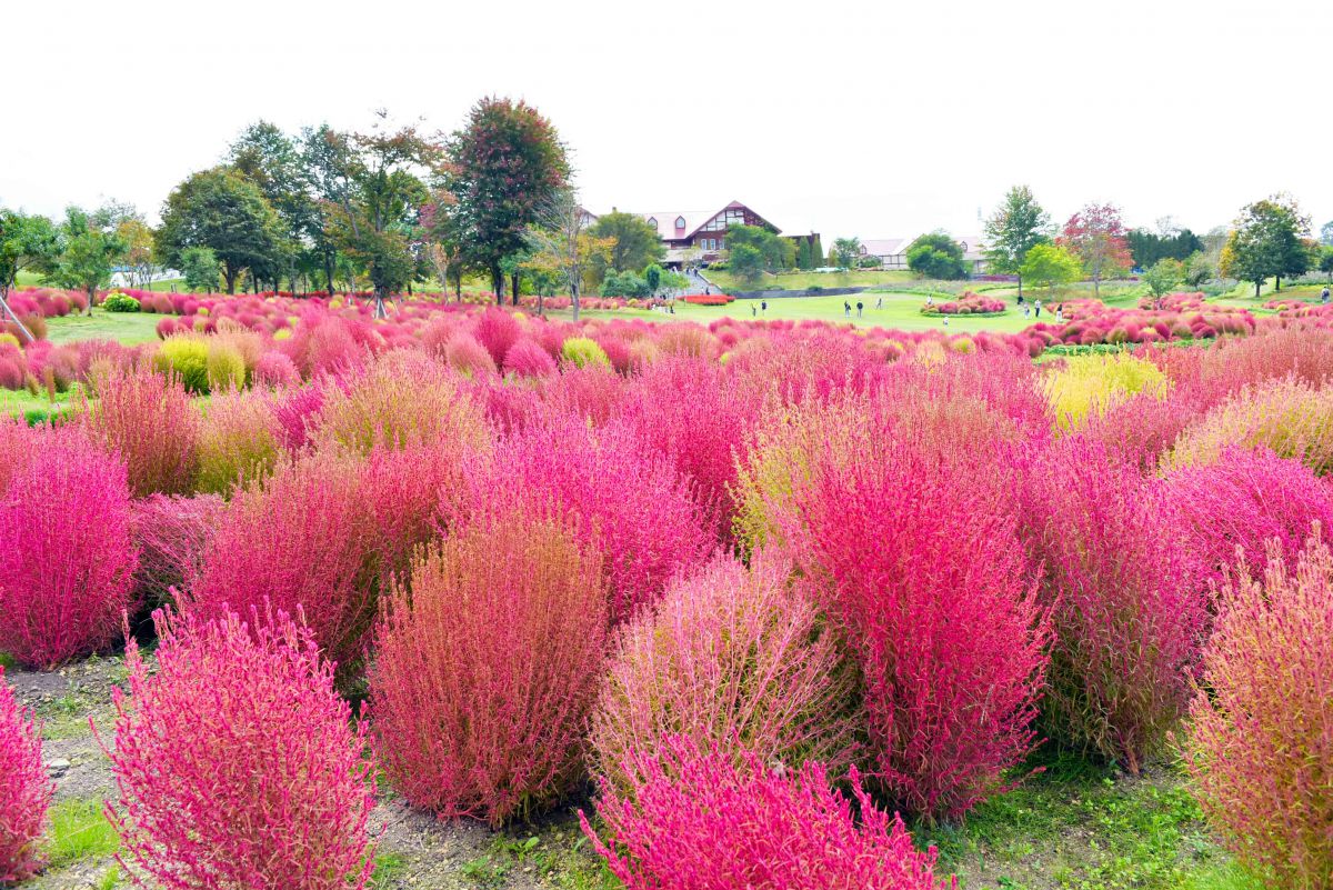 四季折々の花が咲くガーデン。秋の主役はコスモスとコキア