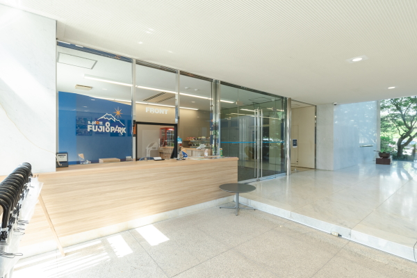 施設は東名高速道路富士インターを降りてすぐ、周辺には水泳場や運動公園などが集まった「スポーツウェルネス交流ゾーン」にあります。広い敷地面積は、大学キャンパスの跡地だからこそ。インドアスポーツもアウトドアスポーツも楽しむことができます。