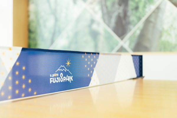 卓球台に張られたオリジナルのネットには、キラリと光る“想い”が込められた、施設のロゴがプリントされていました。