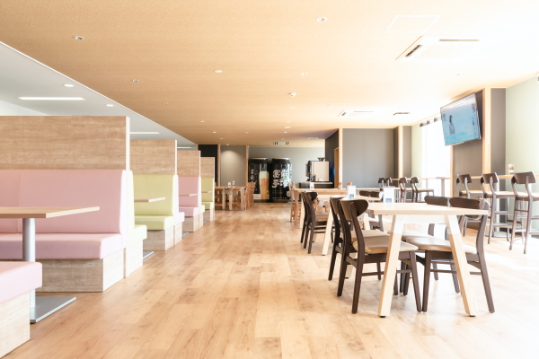 卓球を楽しんだあとは、受付をしたホテル棟の奥へ。一般客向けに開放されているこの場所は、わずか300円で時間無制限のドリンクバーとフリーWiFiが利用できるラウンジです。