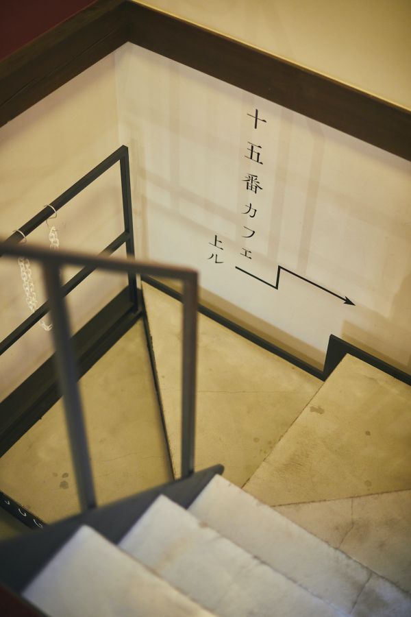 なぜ分かりにくいかというと、路面に「川端滝三郎商店」という日本の手仕事で使う道具を商う雑貨店があり、その店舗の奥に2階に「十五番カフェ京都店」へと続く階段があるから。