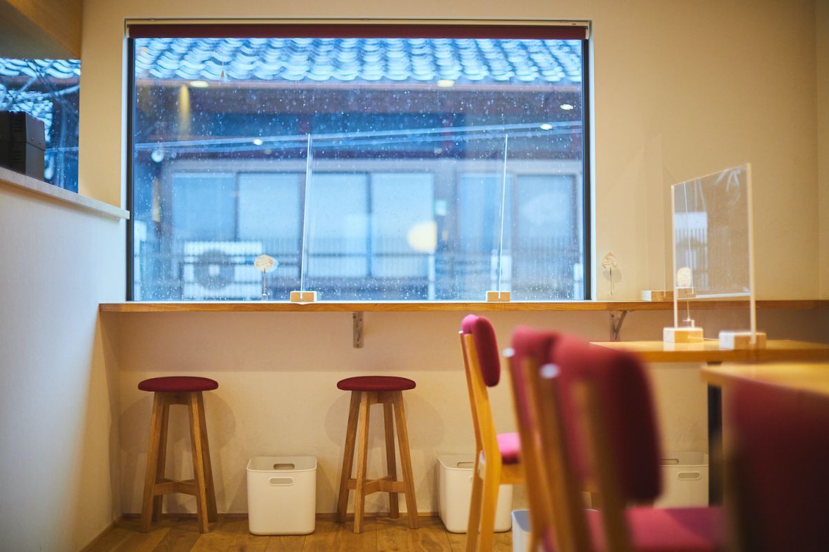 昔ながらの瓦屋根の日本家屋が目の前にあり、京都の町らしい風情があります。しかも無料wi-fi完備で、リモートワークの気分転換に使えそう。