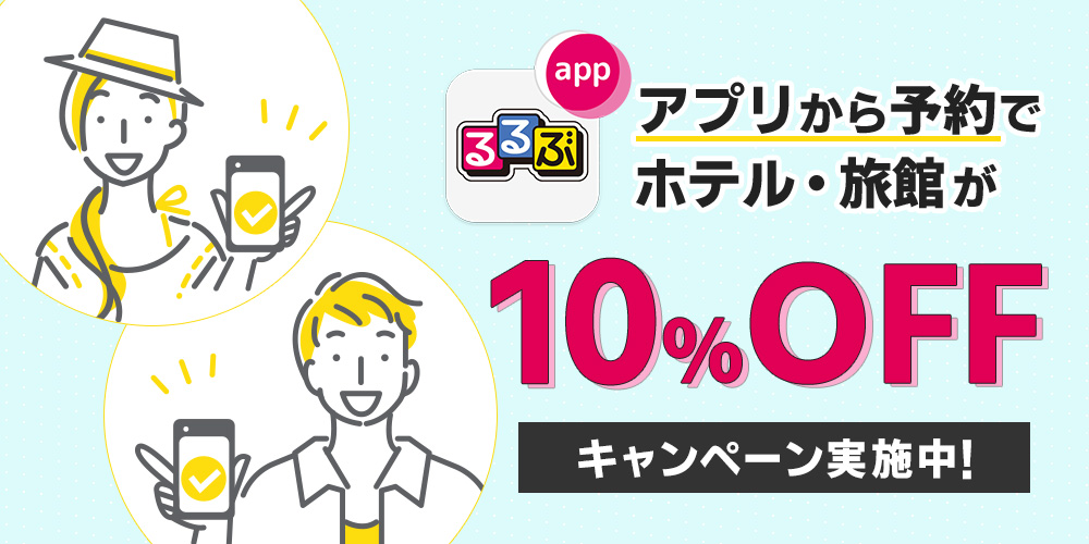 「るるぶ」アプリのリニューアルを記念して、ホテル・旅館の予約が10%割引になるお得なキャンペーンを実施中!「るるぶ」アプリの宿泊予約検索から、るるぶトラベルにて宿泊予約を行うことで割引が適用されます。