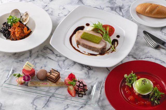 フランスで人気のパティスリー「Sadaharu AOKI paris」とのコラボレーションメニューもクリスマスの装いで登場。「サダハルアオキ」で人気の”デギュスタシオン”に東京ディズニーランド限定のケーキ”ローズ&ルビーチョコレート”を組み合わせたスペシャルコースです。