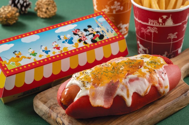 ベーコンにチーズ入りのホワイトソースをかけ、チェダーチーズがトッピングされた、まるでグラタンのような、ボリューム感のあるホットドックに、フレンチフライとドリンクがつく付くセットです。