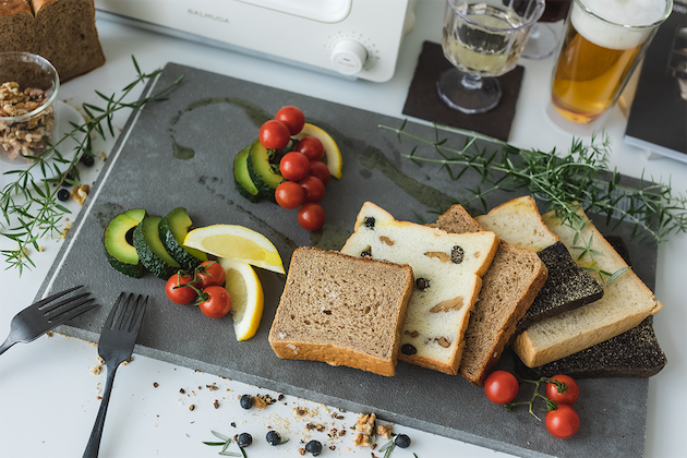 配合率や挽きの粗さを変えることで、多彩な味と風味の変化を楽しんでいただきたい。そんな思いから、6種類の食パンをラインナップしています。