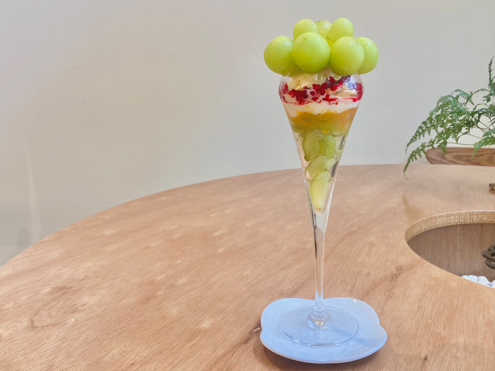 花嫁に見立てたパフェ「くくりひめの嫁入り」シャインマスカット好きは必食