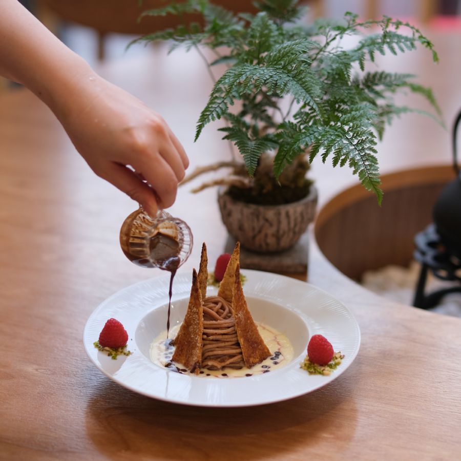 甘いスープ&ビターなソースと合わせて♪新感覚の和栗モンブランもお目見え