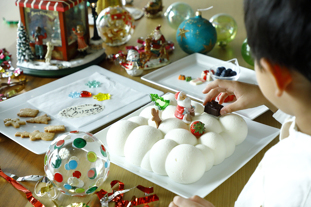 「プレザント~Pleasant~」の特徴は何といっても、自宅で自由にデコレーションができること。付属の飴細工やフルーツ、クッキー、チョコレートなどをみんなで飾り付ければ、世界にひとつだけのクリスマスケーキの完成です♪