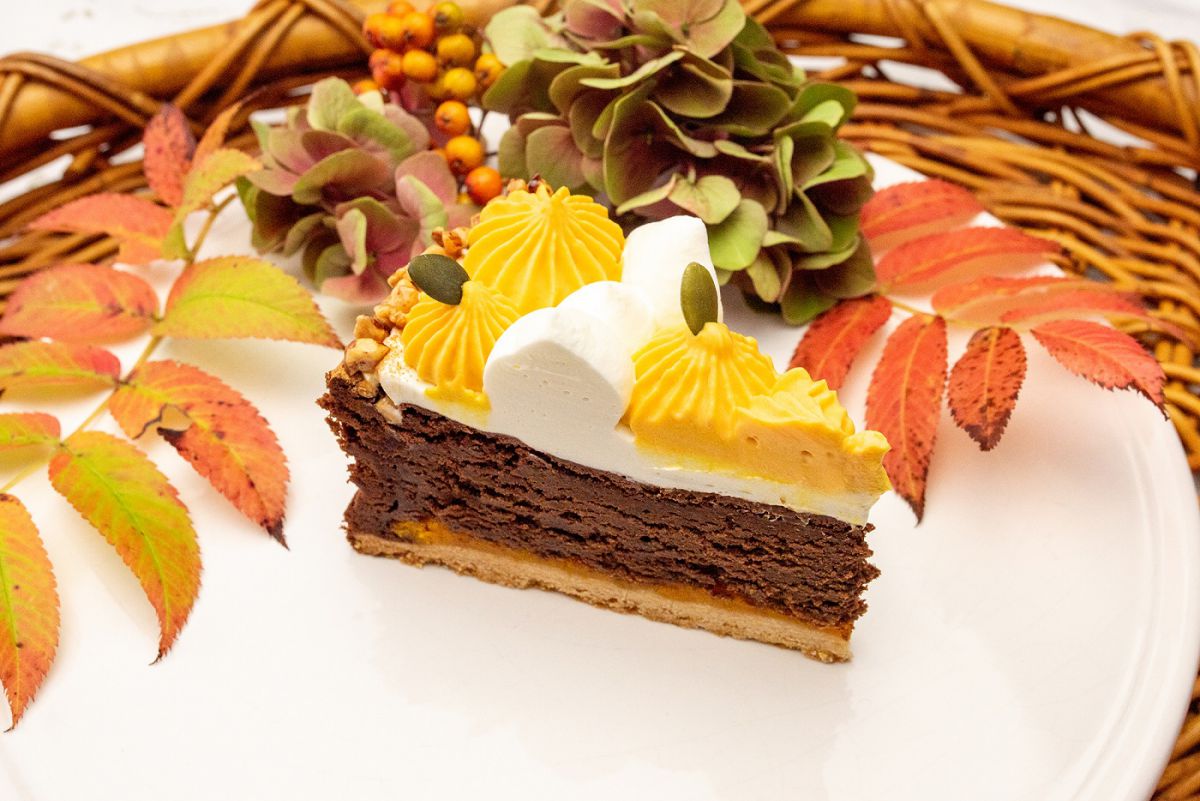カボチャ畑をイメージした新作「カボチャクリームとクラシックショコラのタルト」