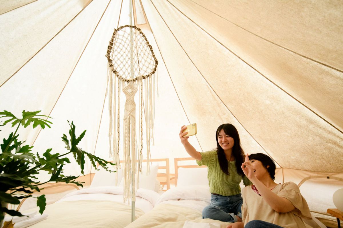 ふかふかベッドにエアコン完備、Wi-Fiも使えるテントで快適ステイ