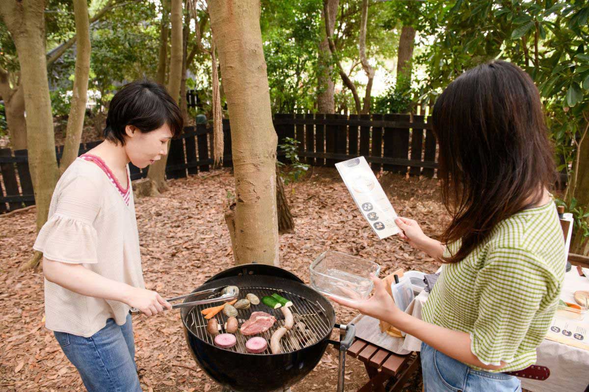 各テーブルに食材と一緒に焼き方のアドバイスが用意されているほか、スタッフもアシストしてくれるので、BBQ初心者でも安心。BBQメニューはヴィーガンや子ども用も用意されています。