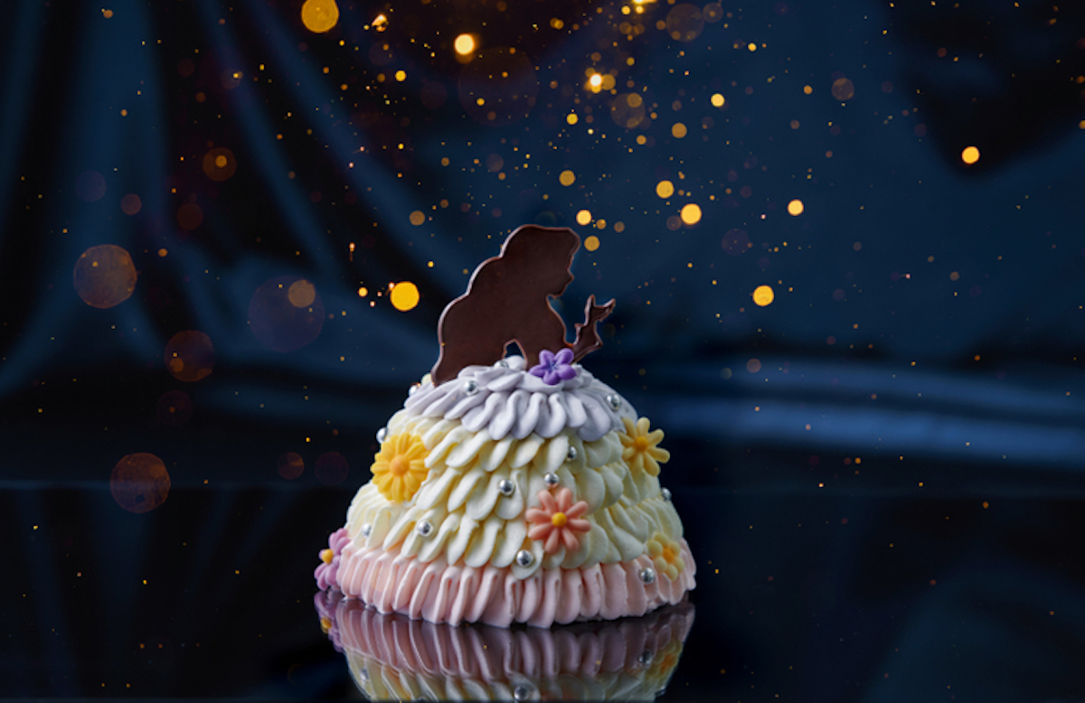 カラフルなお花が散りばめられたグラデーションカラーが美しい「ドレス・ド・フラワープリンセス」4320円。ドレスの中には、いちごのショートケーキが隠れています。滑らかで口当たりがよい甘さ控えめの生クリームと、甘酸っぱいいちごとの相性は抜群です。
