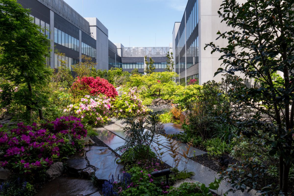 中庭「島々の庭~四季~」は季節の花木で里から山へつながる自然風景を表現しているとか。