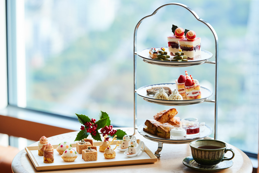 51階の「ザ タヴァン ラウンジ」では、12月1日(水)からホリデーシーズンを堪能できるアフタヌーンティーがスタート。「クリスマスマーケット」をイメージし、クリスマスカラーのトライフルやツリーのクッキー、トナカイ型のフォアグラムースなどこの時期ならではの豪華な食材を使用したセイボリーやスイーツが楽しめます。