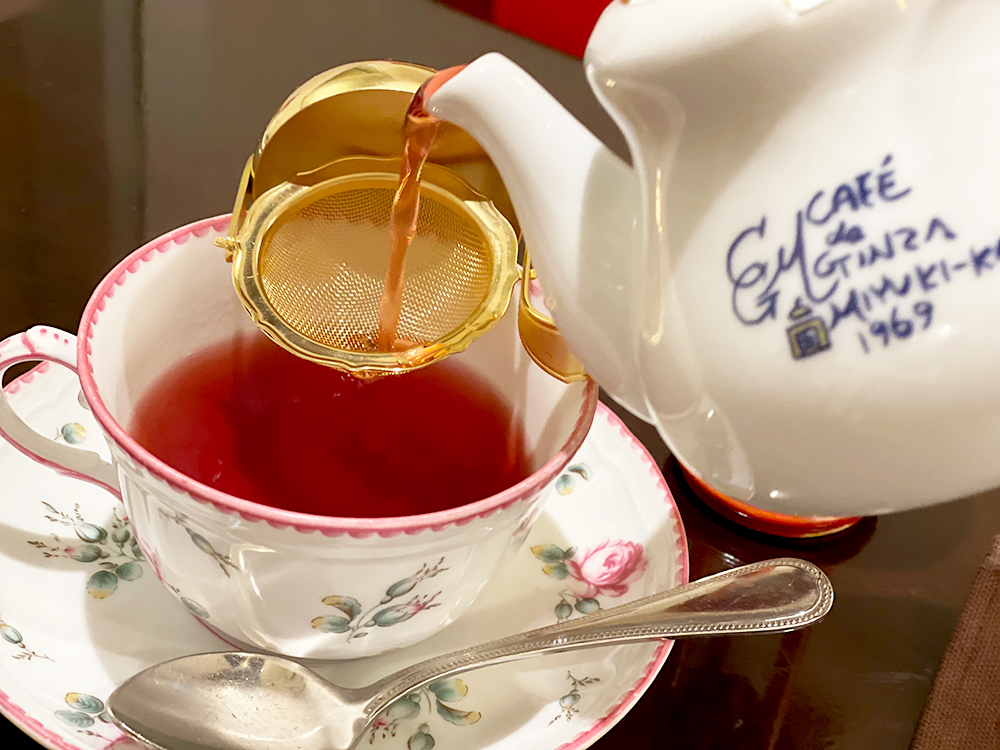 紅茶の茶器に使われているのは、イタリアの陶磁器ブランド「ジノリ」。普段はなかなか手にすることのない美しいカップで紅茶を味わえば、より優雅な気分に♪