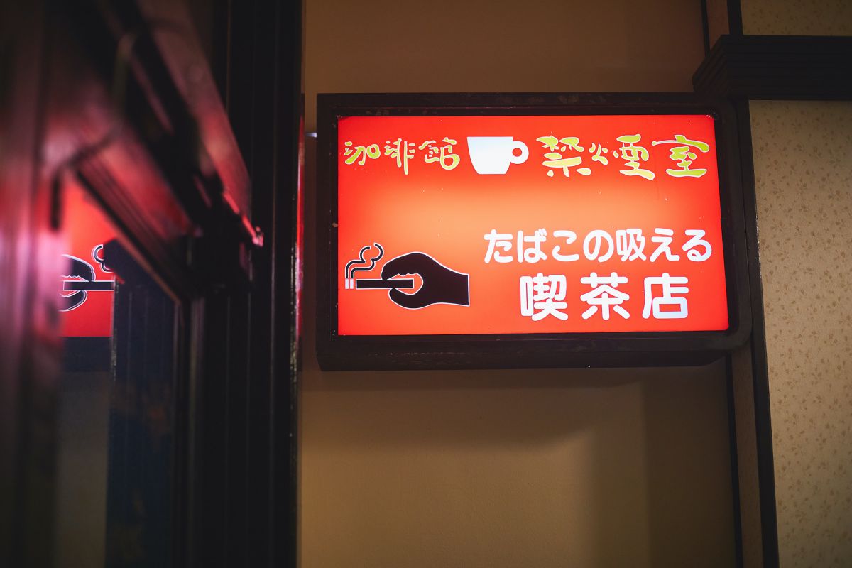 当時の店名は「禁煙室」なのに、「たばこの吸える喫茶店」の看板が加えられているのも時代の流れを感じます。