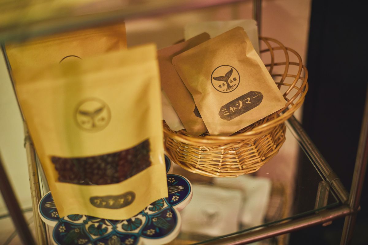 豆とドリップバッグも販売。パッケージが少しずつ違います。よく見るとロゴと豆の名前はハンコ。細部まで手作りの温かみを感じられます。