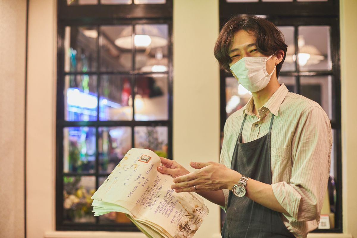 昔のもの、古いものを残して、未来に繋いでいきたいという山口さんの思いが呼び寄せたのか、阿波座のレトロビルの庭からは、今は存在しない昔々の喫茶店の専門学校「関西喫茶専門学院」の教科書が。ここには昭和の喫茶店の王道レシピがたくさん載っていて、先ほど紹介したプリンアラモードとホットケーキはこの教科書から復刻したもの。(プリンアラモードのフルーツは季節によって変更)