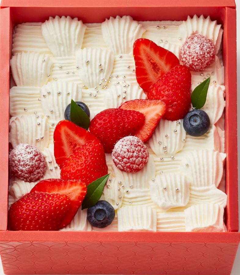 「Art Temptation -アートの甘い誘惑-」をコンセプトに、ペストリー料理長が作り出す芸術的なケーキは、定番人気の玉手箱型、イチゴのショートケーキ、シュトーレン、そして新作のピスタチオケーキ、切り絵細工からヒントを得たカシス・フィグ、チョコとコーヒーのカフェ・トンカ、チーズとリンゴのフロマージュ・クリュと個性光る7種から選べます。