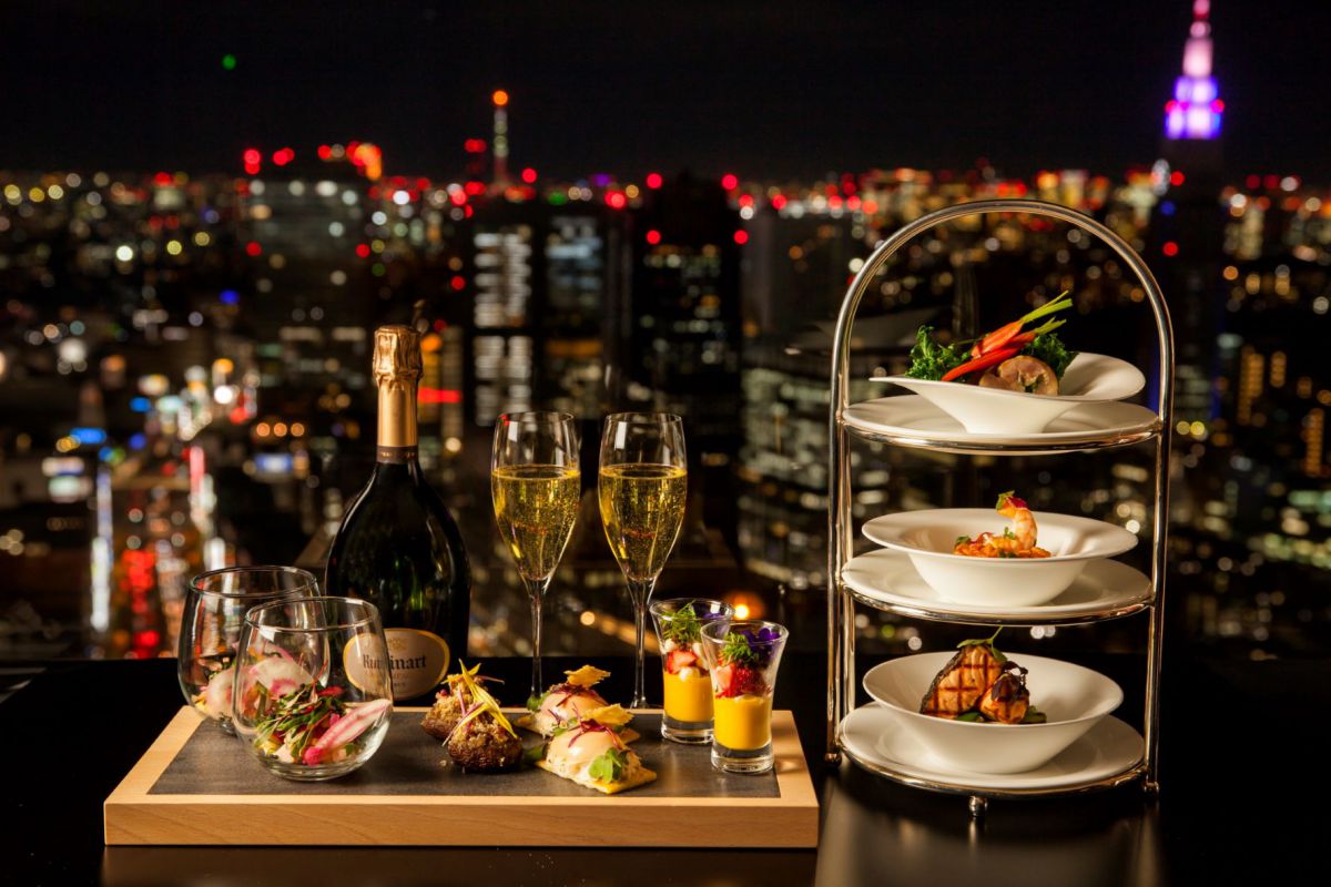 41階にある「ピーク ラウンジ」では、1万450円(税込、サービス料別)で、食事とともにシャンパン、ワイン、カクテル、ビール、ソフトドリンクをフリーフローで好きなだけ楽しめます。宿泊客でなくても利用が可能です。ご予約は各レストランにお問い合わせください。