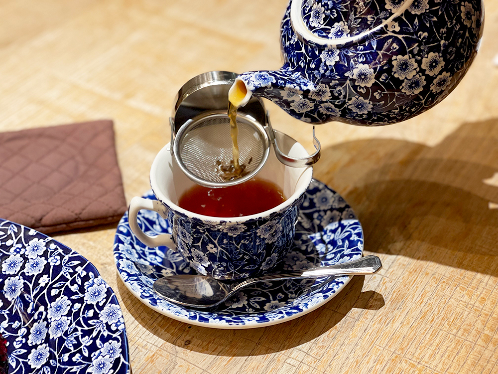 選んだ紅茶は食事にもスイーツにも合わせやすいという「アフタヌーンティーブレンド」。こちらの店舗はほかと違って、「リーフイン」という茶葉をポットに入れた状態で提供する方法がとられているので、刻々と変化する紅茶の味わいも堪能できます。