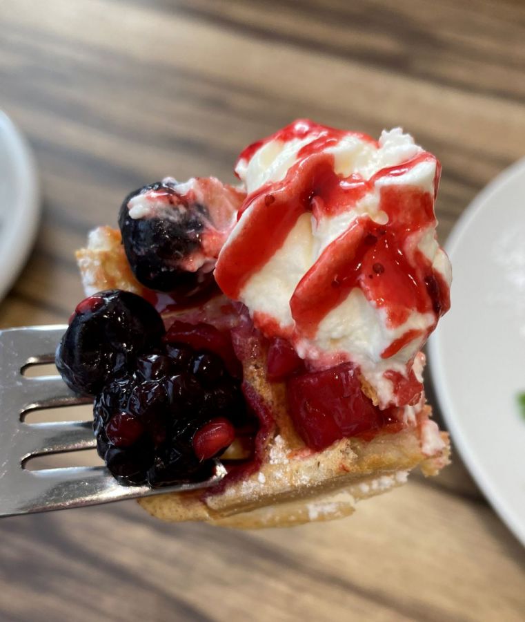 このお店で焼き上げられているというワッフルは、甘さ控えめで上品な味。さっくりとした食感と小麦の風味がしっかりと感じられます。生クリームの甘みとベリーベリーのソースの酸味がアクセントとなり、いくらでも食べられてしまいそうです。このカフェではLOVOTとのふれあいがメインでお料理はサブ、なんて思っていたら、完成度にきっと驚くはず!パティシエが一枚一枚焼きあげていると聞き、そのおいしさにも納得です。