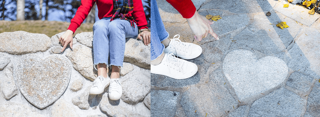 2つの展望台の近くには3つの隠れハートがあるんです。写真左はファーストテラスの石垣の中、写真右はセカンドテラスに向かう途中の坂道の敷石を探してみて。残る一つは、坂道序盤の石垣にありますよ。